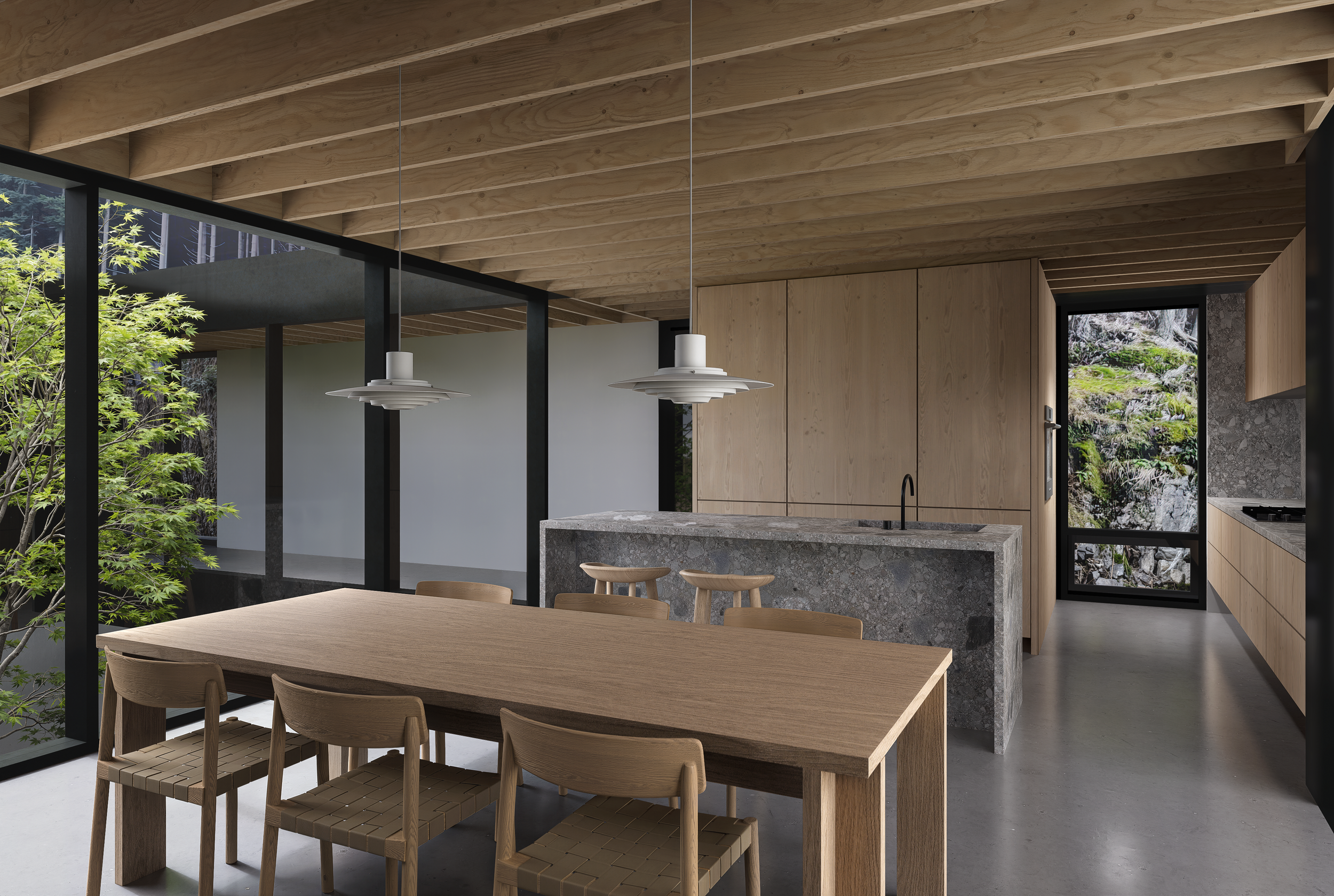 This is a home shaped by its setting—where architecture, landscape, and view are inseparable. It offers a sense of refuge from the elements while remaining deeply connected to them, creating a calm, elemental sanctuary rooted in the unique character of Bowen Island.