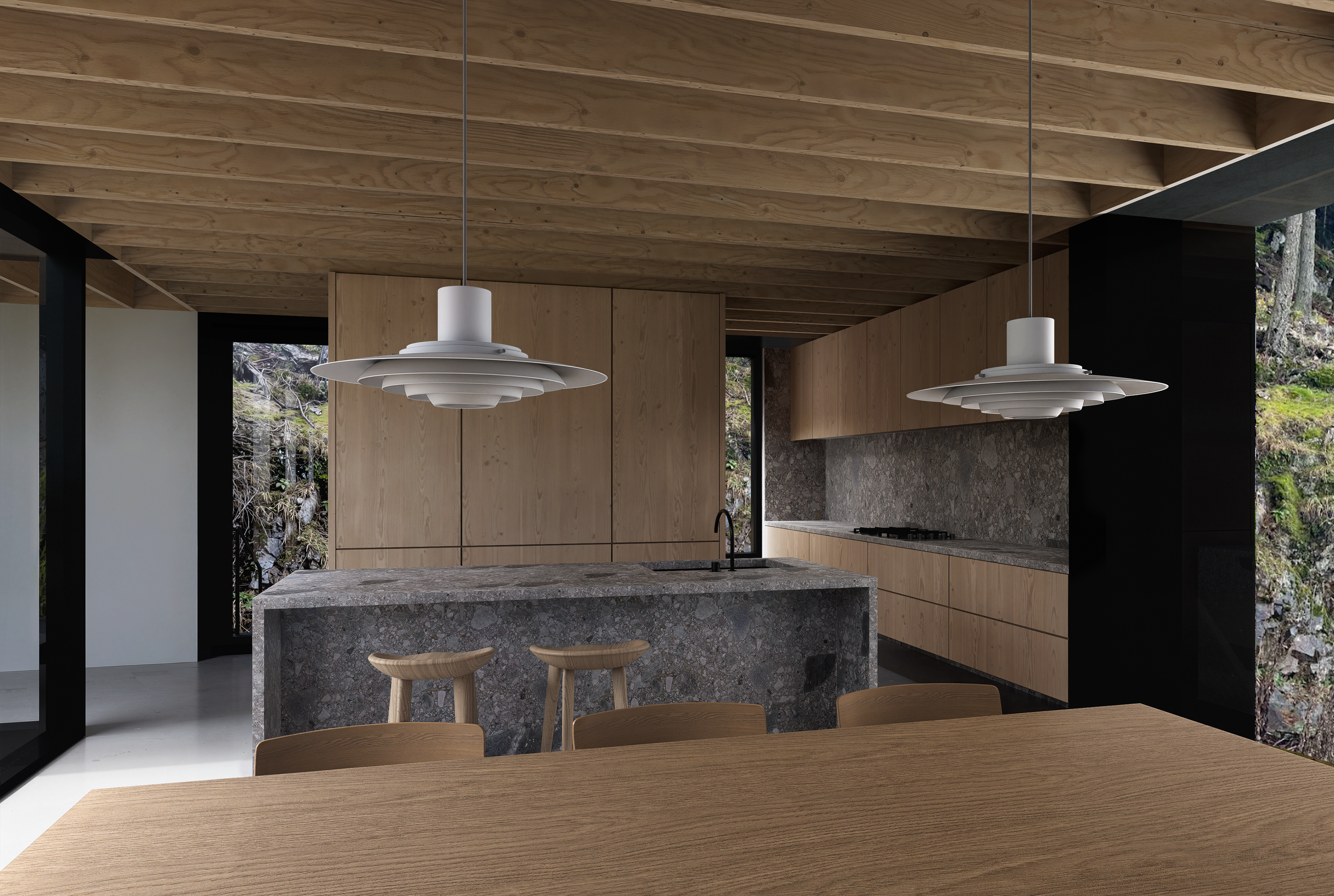 A reverse floor plan places the primary living spaces above, allowing them to open generously to the horizon and morning light. At the heart of the home, an internal courtyard introduces daylight deep into the plan, creating moments of pause and calm while strengthening the connection between interior and exterior.