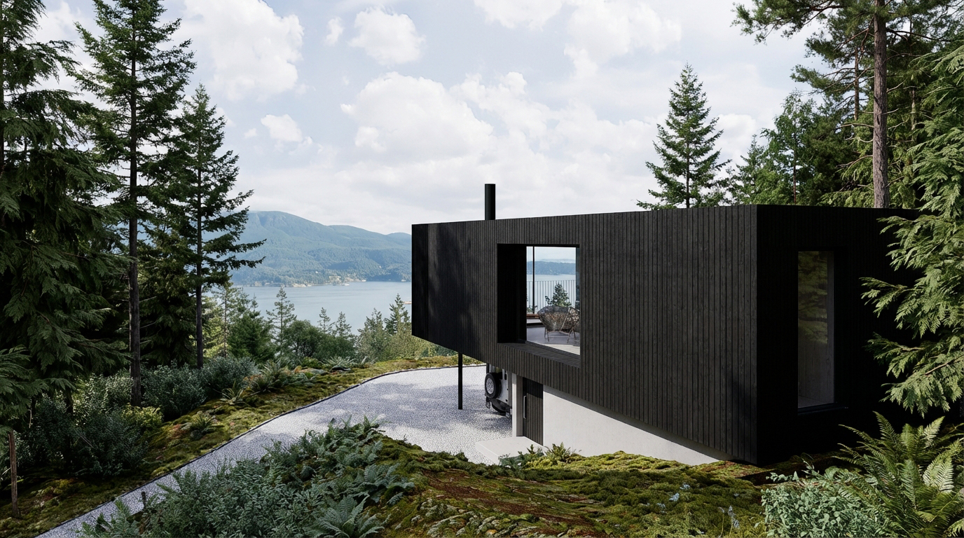 Set within a quiet, forested site on Bowen Island, this single-family home is conceived as a private retreat immersed in nature, with expansive east-facing views stretching across the ocean toward the mountains and the city of Vancouver in the distance. The architecture is guided by a desire to elevate daily living into the landscape—positioning the home to fully capture the panoramic outlook while maintaining a strong sense of shelter and seclusion among the trees.